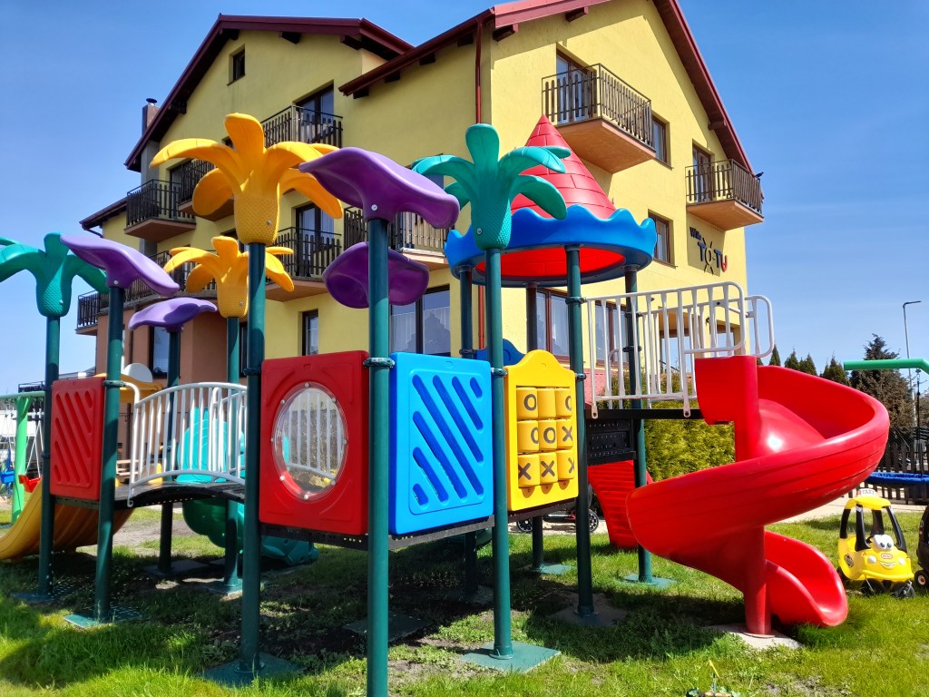 Naszym Gościom zapewniamy przytulne, jasne pokoje 2, 3 i 4-osobowe z możliwością dostawek w postaci łóżeczek turystycznych. Oferujemy udogodnienia dla dzieci w postaci wanienek, nocników, nakładek, podnóżków. Wszystkie pokoje posiadają łazienki z prysznicem oraz balkony. W każdym pokoju jest lodówka, czajnik elektryczny, TV oraz dostęp do WiFi. Do dyspozycji Gości jest duża ogólnodostępna kuchnia wraz z jadalnią (zapewniamy krzesełka do karmienia). Nasz Obiekt jest bardzo przestronny, szerokie korytarze i duże powierzchniowo części wspólne gwarantują Państwu wygodę i komfort pobytu.